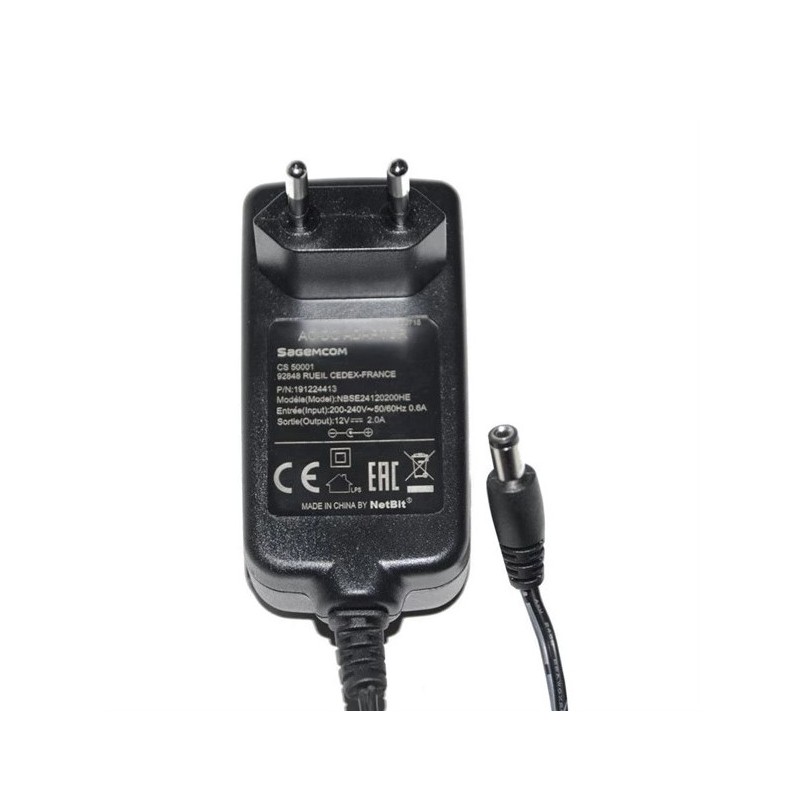 Napájač, sieťový adaptér Sagemcom 12V/2A- koncovka 5,5 x 2,5 x 9 mm - typ MBSE24120200HE - prívodný kábel 2m - kontrolka