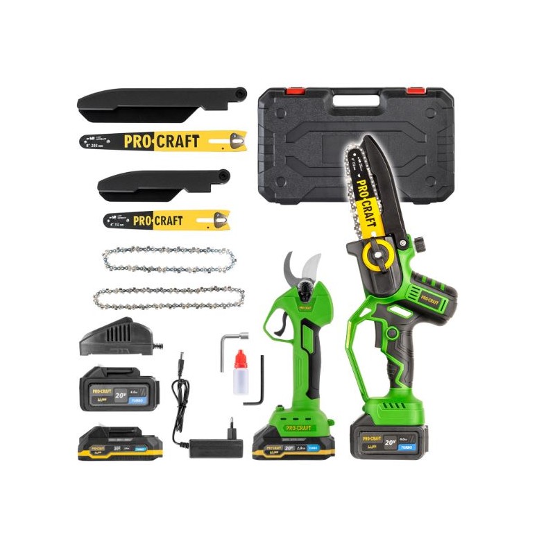 Sada PROCRAFT SPKA32LIP/ES25LI predstavuje kompletné riešenie pre efektívnu prácu v záhrade. Kombinácia výkonnej jednoručnej reťazovej píly a precíznych aku nožníc na konáre v jednom balení vám umožní zvládnuť všetky bežné záhradnícke úlohy. Oba nástroje využívajú pokročilú 20V Li-ion technológiu s vymeniteľnými batériami, čo zaručuje maximálnu flexibilitu a nepretržitú prácu bez káblov.