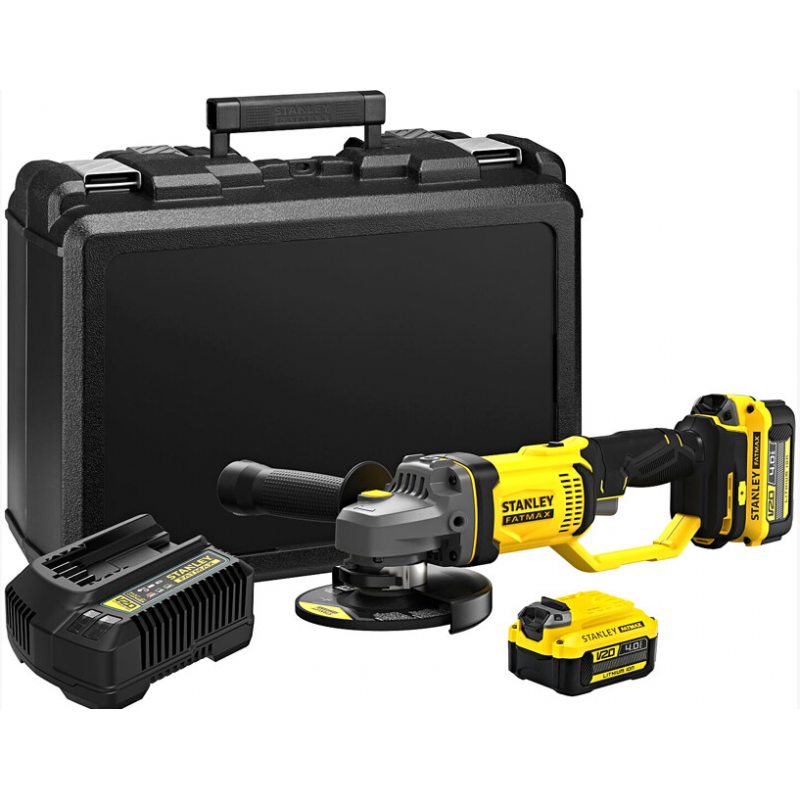 Akumulátorová uhlová brúska Stanley FatMax SFMCG400 s praktickou zadnou oblúkovou rukoväťou je ideálná pre obrusovanie a brúsenie, presné rezanie a dôkladné odhrotovanie bez závislosti na pripojenie k elektrickej sieti. Uhlová brúska je uspôsobená pre kotúče s priemerom 125 mm a vďaka konštrukcii prispôsobené pre optimálny odvod tepla je vhodná aj pre väčšie zaťaženie. Ponúkaná verzia SFMCG400M2K je dodávaná s dvojicou Li-Ion aku batériou (V20) s kapacitou 4,0 Ah a dlhším pracovným výkonom.Aku uhlová brúska Stanley FatMax Akumulátorová brúska SFMCG400 patrí do rady náradia Stanley s označením FatMax. Výrobky tejto rady predstavujú vyššiu triedu určenú pre bežné profesionálne využitie s maximálnym výkonom a dlhou životnosťou.Najnovšia generácia Li-Ion batérií V20 Vylepšené 18V Li-Ion batérie Stanley FatMax V20 sú plne kompatibilné so všetkými aku strojmi a záhradnou technikou tejto rady. Vďaka vylepšenej technológii Li-Ion článkov (bez pamäťového efektu) ponúkajú predĺženú výdrž a dlhšiu životnosť.Varianta SFMCG400M2K s príslušenstvom Ponúkaná verzia uhlové brúsky Stanley FatMax V20 s produktovým označením SFMCG400M2K je dodávaná v kompletnej sade s dvojicou 18V akumulátorov (4,0 Ah), nabíjačkou a kufrom pre jednoduché prenášanie a uloženie.