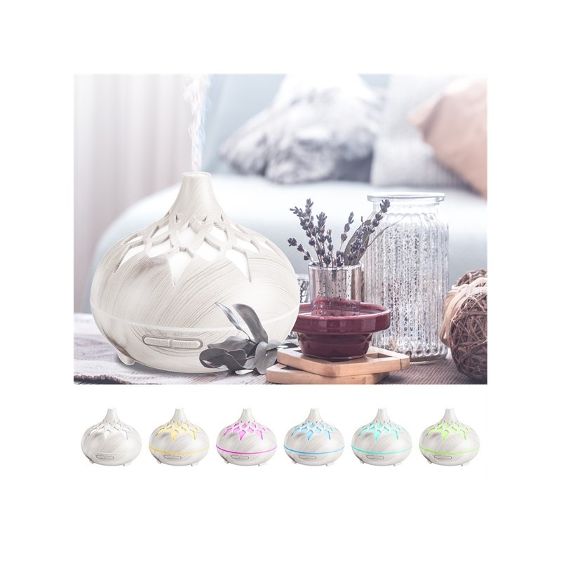 Popis produktu Ideálny doplnok do Vašich domovov, ktorý nádherne prevonia miestnosti a dokáže Vám zlepšiť náladu. Aróma difuzéry sú vhodné pre aromaterapiu, chromoterapiu, vzhľadom k svojmu dizajnu sú aj štýlovým interiérovým doplnkom. Tento prístroj premení vodu na jemnú vodnú paru. Ak pridáte do vody pár kvapiek esenciálneho oleja, elektrický aróma difuzér je pôsobením ultrazvuku rozloží na jemné mikročastice, ktoré prevonia váš byt.Technické parametre:- Objem zásobníka: 500 ml - Prevádzkové napätie: DC 24 V / 0,6 A / 110-240 V 50/60 Hz - Príkon: 12 W - Ultrsonické frekvencia: 2,4 MHz - Rozmery: 168x148 mm - Odparovanie: 45-60 ml / hod - Rozsah: 12-20 m2 - Hlučnosť: 35 dB - Materiál: PP (Polypropylén), ABS - Prevádzka difuzéra: 1H, 3H, 6H, ON nepretržitú prevádzku - Farba: biele drevoObsah balenia:- 1x difuzér - 1x odmerka na vodu - 1x adaptér do sieteUpozornenie:Ako aróma používajte iba prírodné esencie bez iných chemických látok. Nenalievajte do prístroja horúcu ani minerálnu vodu. K výrobe pary sa nepoužívajú vatové tyčinky.