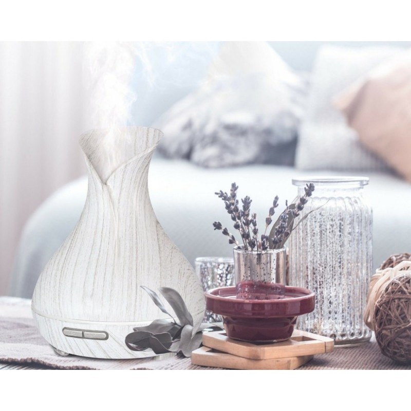 Ideálny doplnok do Vašich domovov, ktorý nádherne prevonia miestnosti a dokáže Vám zlepšiť náladu. Aróma difuzéry sú vhodné pre aromaterapiu, chromoterapiu, vzhľadom k svojmu dizajnu sú aj štýlovým interiérovým doplnkom. Tento prístroj premení vodu na jemnú vodnú paru. Ak pridáte do vody pár kvapiek esenciálneho oleja, elektrický aróma difuzér je pôsobením ultrazvuku rozloží na jemné mikročastice, ktoré prevonia váš byt.Technické parametre:- Objem zásobníka: 350 ml - Prevádzkové napätie: DC 24 V / 0,5 A / 110-250 V 50/60 Hz - Príkon: 12 W - Ultrsonické frekvencia: 2,4 MHz - Rozmery: 167x220 mm - Odparovanie: 45-60 ml / hod - Rozsah: 12-20 m2 - Hlučnosť: 35 dB - Materiál: PP (Polypropylén), ABS - Prevádzka difuzéra: 1H, 3H, 6H, ON nepretržitú prevádzku - Farba: biele drevoObsah balenia:- 1x difuzér - 1x odmerka na vodu - 1x adaptér do sieteUpozornenie:Ako aróma používajte iba prírodné esencie bez iných chemických látok. Nenalievajte do prístroja horúcu ani minerálnu vodu. K výrobe pary sa nepoužívajú vatové tyčinky.