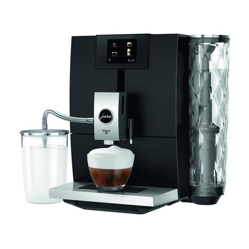 JURA ENA 8 Touch Screen Full Metropolitan Black je jednošálkový automatický kávovar renomovaného švajčiarskeho výrobcu. Pýši sa elegantným, kompaktným dizajnom, ľahkou obsluhou a pokročilými technológiami, ktoré zaručujú prípravu tej najlepšej kávy. Nadchne vášnivých milovníkov espressa i špeciálnych kávových nápojov, pričom je ideálny najmä pre domácnosti a malé kancelárie.JURA ENA 8 Touch Screen Full Metropolitan Black disponuje hneď viacerými jedinečnými vlastnosťami a funkciami akými sú napríklad Systém pulzného extrakčného procesu (P.E.P.®), Inteligentný predlúhovací Aroma systém (I.P.B.A.S.©), výškovo nastaviteľný výpust na kávu, cappuccino alebo horúcu vodu, nesmierne pôsobivá nádobka na vodu valcovitého tvaru, Inteligentný vodný systém (I.W.S.®) či vysokokvalitný mlynček Aroma G3. Ovládanie tohto stroja bude hračkou vďaka dotykovému farebnému TFT displeju v kombinácii s umelou inteligenciou. Kávovar dokáže vykúzliť až 12 rôznych nápojov, pričom je vybavený špeciálnou dýzou, ktorá Vám zaručí prípravu tej najjemnejšej mliečnej peny ľahkej ako pierko. A aby toho nebolo málo, JURA ENA 8 Touch Screen Full Metropolitan Black má atraktívne čierne prevedenie s chrómovými prvkami inšpirované farbami pulzujúceho veľkomesta, vďaka čomu sa rýchlo stane stredobodom pozornosti každej modernej domácnosti/kancelárie.