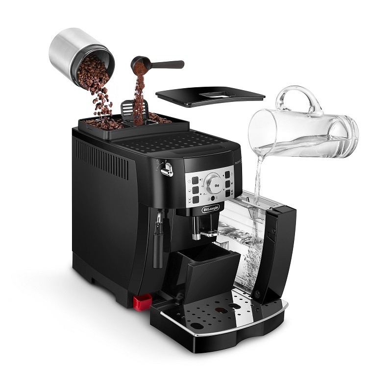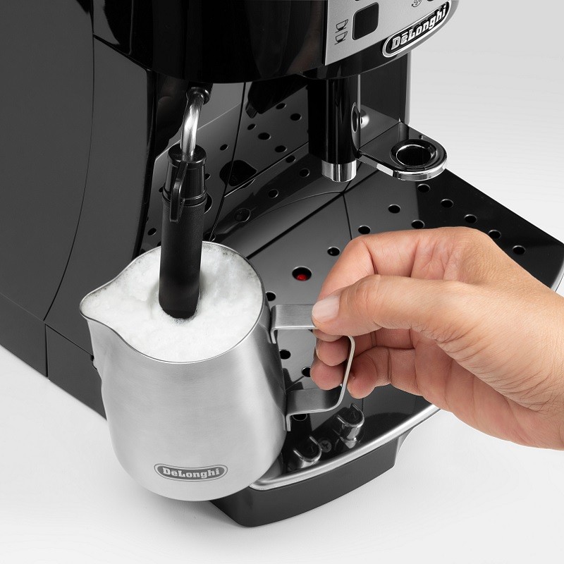 Plnoautomatický kávovar Magnifica S vám pripraví presne takú kávu akú máte radi! Stlačením jedného tlačidla vyčaríte aromatické, povzbudzujúce espresso v talianskom štýle. Vlastným preferenciám môžete prispôsobiť nie len chuť a množstvo, ale taktiež teplotu kávy. Pokiaľ máte radi mliečnu kávu, tak pomocou Cappuccino systému pripravíte zamatovo jemné napenené mlieko.