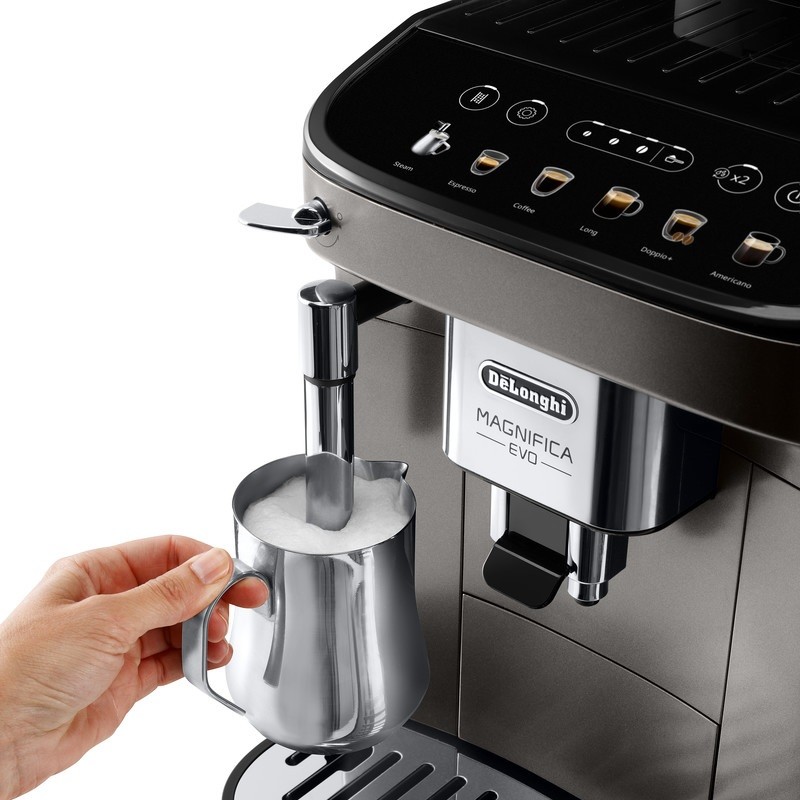 Potrebujete svoje ráno začať poriadnou šálkou lahodnej kávy? Automatický kávovar De'Longhi Magnifica Evo vám pomôže s jej prípravou, aj keď ste ešte rozospatý. Jeho obsluha vrátane výberu kávy je veľmi jednoduchá. Pomocou neho pripravíte klasické espresso, americano, kávu long, doppio+ aj horúcu vodu na čaj alebo nahriatie šálok.