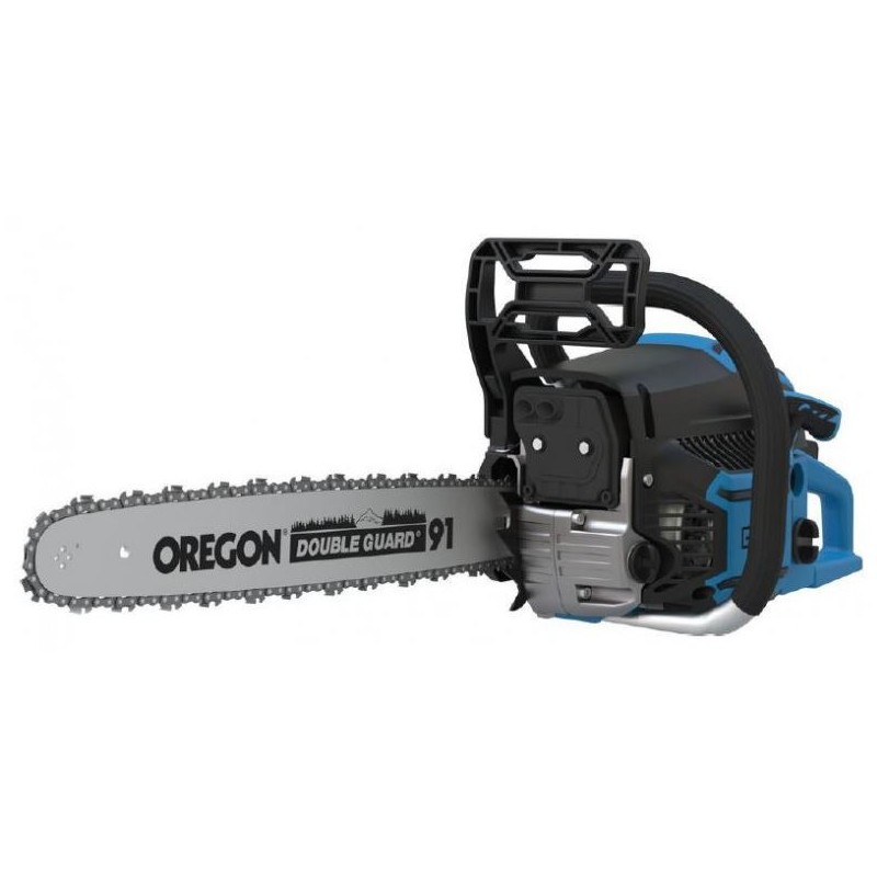 Výkonná benzínová reťazová píla pre náročné použitie pri spracovaní palivového dreva a pre výrub stromov. Vysoko účinný systém zabraňujúci vibráciám. Systém štartovania pomocou pružiny. S čerpadlom Primer a sýtičom. Kovový doraz, obojstranné uloženie kľukového hriadeľa. Prístup ku vzduchovému filtru a zapaľovacej sviečke bez použitia náradia. Vrátane nádoby na miešanie paliva. Ochrana vodiacej lišty a reťaze. Súprava náradia s praktickou taškou na náradie.