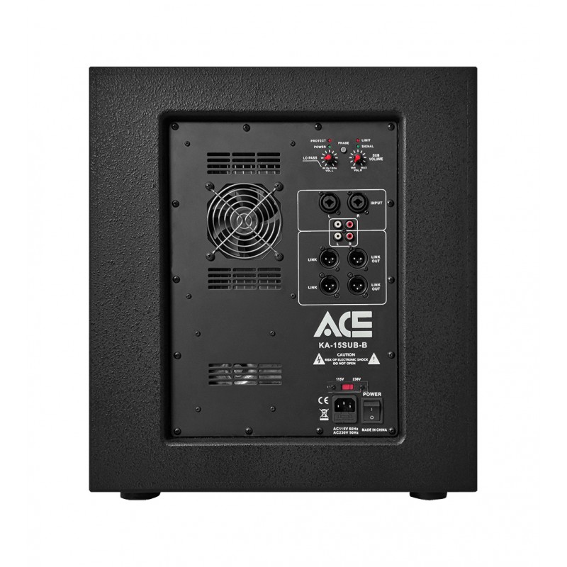 15” SUBWOOFER S VÝKONOM AŽ 1000 W.• Aktívny subbas s 15-palcovým meničom s odolnou 4-palcovou vysokoteplotnou cievkou a s vysokoúčinným zosilňovačom, • Robustná, vnútorne vystužená skriňa je vyrobená z MDF s povrchovou úpravou štruktúrovaného laku s dobrou odolnosťou proti vlhkosti, • Reprobox je vybavený elektronickou tepelnou ochranou a ochranou proti preťaženiu, • Automatické nastavenie rýchlosti otáčok ventilátora chladenia, • VSTUPY: 2x XLR + Jack 6,3 mm kombinované konektory, 2x RCA, • VÝSTUPY: 4x XLR, 2x RCA, • Prepínač nastavenia fázy (0°/180°)Technické špecifikácie: • Výstupný výkon: RMS: 500 W / MAX: 1000 W, • Reproduktor: 15” (381 mm), • Frekvenčný rozsah: 35 Hz – 300 Hz (-10 dB), • CITLIVOSŤ: 96 dB (1 m),Externé ovládacie prvky: • Ovládanie hlasitosti, obmedzovač signálu / klipu s LED, • Elektronické ochrany: tepelná ochrana a ochrana proti preťaženiu, • Pripojenie: Štandardný IEC kábel, • Vstupné napätie: 100-120, 50/60 Hz 220-240 VAC 50/60 H, • Poistka: 100-120 V, T15AL AC250 V 220-240 V, T8AL AC250 V, • Rozmery (výška x šírka x hĺbka): 54 x 52,5 x 63 cm, • Hmotnosť reproboxu: 39 kg, • Hmotnosť balenia: 43 kg,