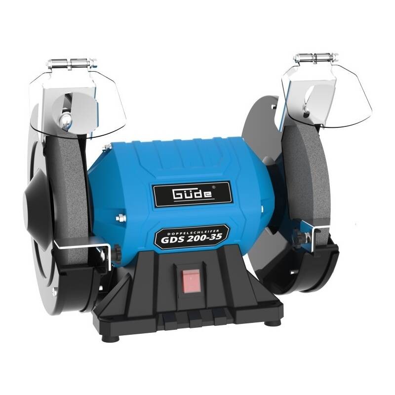 Stolová dvojkotúčová brúska s ochrannými krytmi proti iskrám s možnosťou nastavenia, stabilná základňa, osi uložené v guľôčkových ložiskách, kondenzátorový motor, chod bez vibrácií. Polohovateľné pracovné opierky, brúsny kotúč na hrubé a jemné brúsenie s adaptérom 16 mm. Stolová dvojkotúčová brúska GDS 200-35