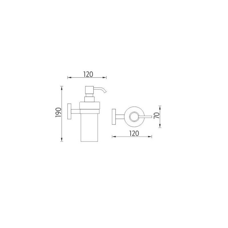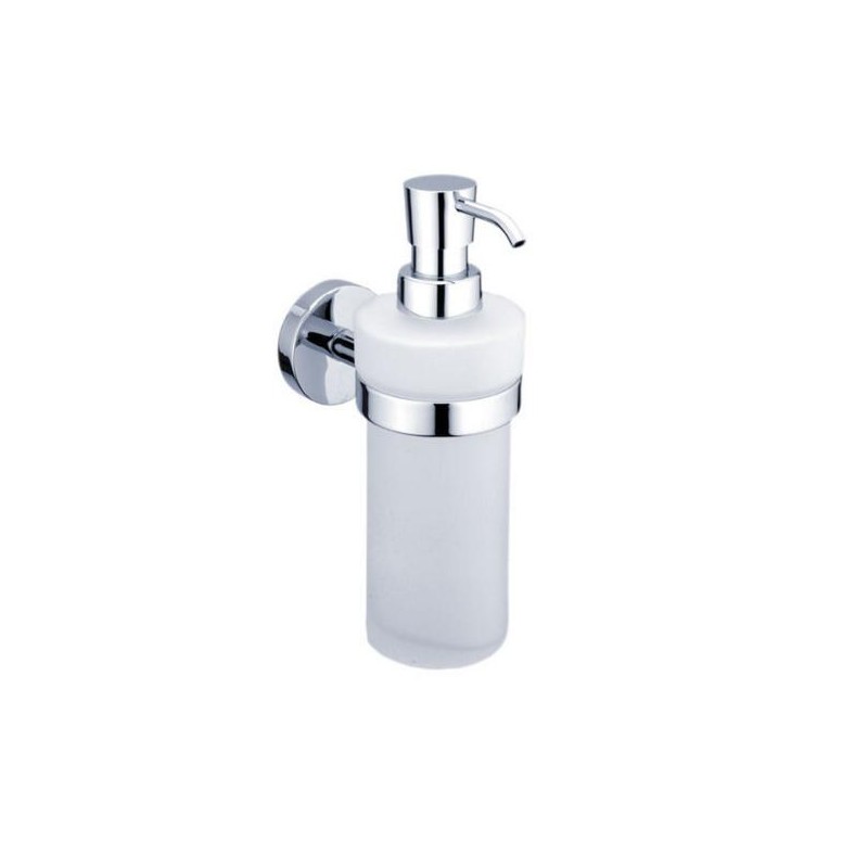 Nástěnný dávkovač tekutého mýdla. Nádobka z matného skla. Pumpička plast/chrom. Objem 250 ml.