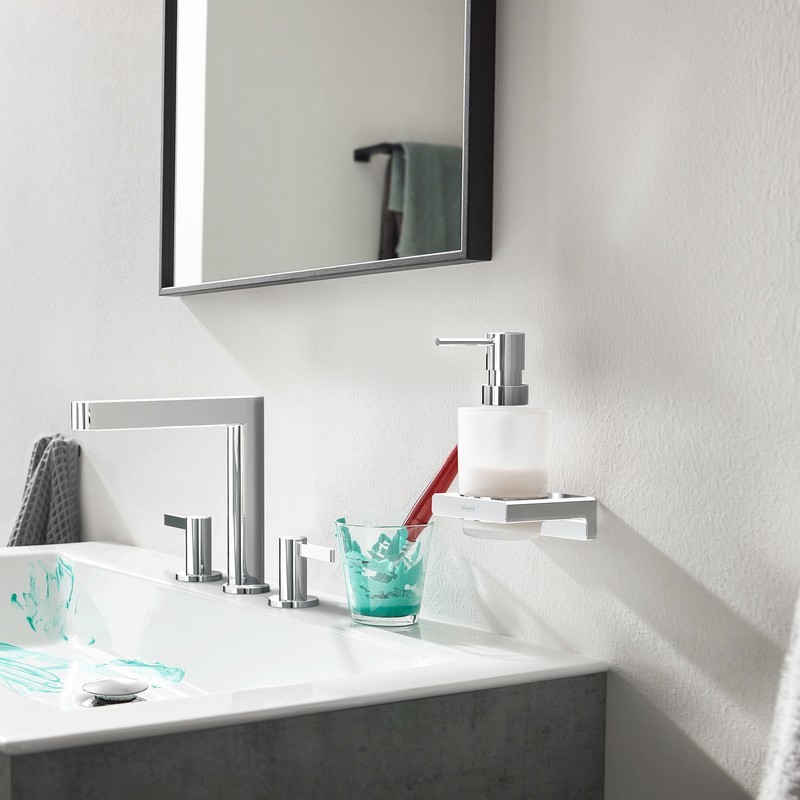 Dávkovač tekutého mydla AddStoris od firmy hansgrohe dodáva kúpeľni vizuálnu a funkčnú eleganciu. Do sklenenej nádoby sa vojde asi 200 ml tekutého mydla a vydáva presné dávky (2 ml), keď stlačíte pumpičku. Moderný a minimalistický dizajn nadchne používateľa typicky výrazným štýlom. Výborne dopĺňa geometrické kúpeľňové batérie, napríklad z radu hansgrohe Metropol.