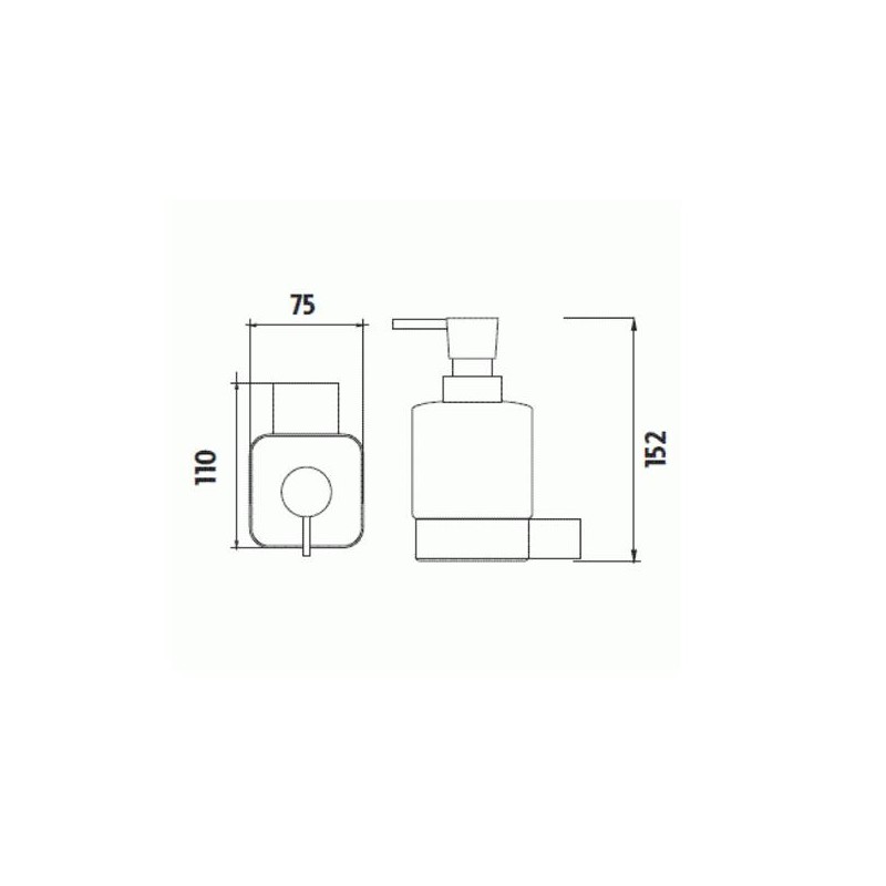 Nástěnný dávkovač tekutého mýdla, 320 ml. Pumpička plastová s povrchovou úpravou chrom. Nádobka keramická.