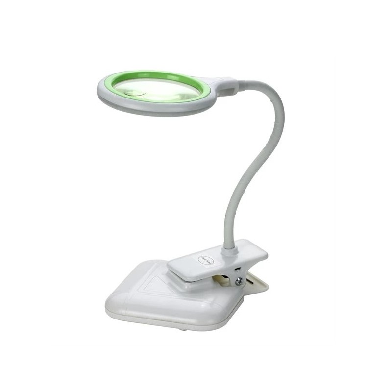 Kompaktná a prenosná lupa s LED osvetlením, USB napájaním, dotykovým ovládaním, svorkou a stojanom. Vdaka kompaktným rozmerom je vhodná pre cestovanie, malé pracoviská, domácnosti, kancelárie a všade tam, kde nie je žiaduce mat stolnú lupu plnej velkosti. Rameno lupy je polohovatelné, LED osvetlenie zornej plochy sa ovláda dotykovo a možno lubovolne menit farbu svetla na teplú, alebo studenú bielu, a regulovat jas. Pomocou priloženého micro USB kábla je možné lupu napájat napr. z notebooku, nabíjacky na telefón, alebo powerbanky. Stojan využijete všade tam, kde sa nedá lupa uchytit pomocou svorky. Šošovka má dve zväcšovacie plochy.Parametre tovaru: - kompaktná lupa so svorkou aj stojanom - LED osvetlenie s teplým a studeným svetlom, dotykové ovládanie - možnost regulácie jasu osvetlenia - USB napájanie, polohovacie rameno, dvojité priblíženie - napájací USB kábel súcastou balenia - ideálná na cesty, do domácnosti aj kancelárieTechnické parametre: Napájanie: USB 5 V DC Príkon: 2 W, 0.4 A Pocet LED: 18 x teplá biela (4000 K), 18 x studená biela (6500 K) Svetelný tok: teplá biela - 69 lm, studená biela - 73 lm Energetická trieda: F Životnost LED: 25000 hodín Typ ovládania: dotykové Krátky dotyk: studená biela, teplá biela, vypnuté Dlhý dotyk: regulácia jasu Hlavná šošovka: 100 mm, 3 dioptrie Vedlajšia šošovka: 25 mm, 12 dioptrií Zvetšenie: 1.75 x Zvetšenie prídavnej šošovky: 4 x Materiál šošovky: sklo Maximálne roztvorenie svorky: 60 mm Dlžka polohovacieho ramena: 265 mm Dlžka napájacieho USB kábla: 150 cm Prevádzková teplota: -5 až + 40°C Rozmery: 240 x 145 x 90 mm Hmotnost: 1.2 kg Stupen krytia: IP20
