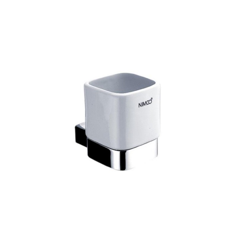 pohár s držiakom KIBO biela/chróm- pohárik keramický biely, - držiak mosadz/ chróm, NIMCO ,
