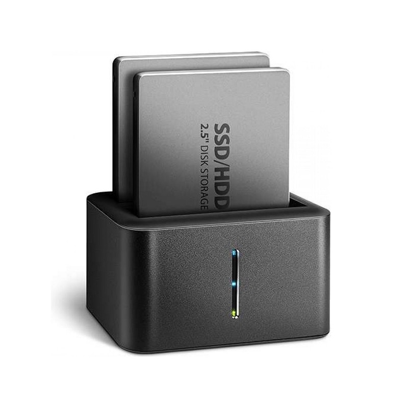 Tento kompaktný pomocník vám umožní jednoducho pripojiť akékoľvek 2.5" disky SATA k počítaču alebo notebooku. Do základne môžete súčasne vložiť jeden alebo dokonca dva disky, pričom nepotrebujete žiadne nástroje ani príslušenstvo. Vďaka tomu je výmena diskov veľmi rýchla a jednoduchá.