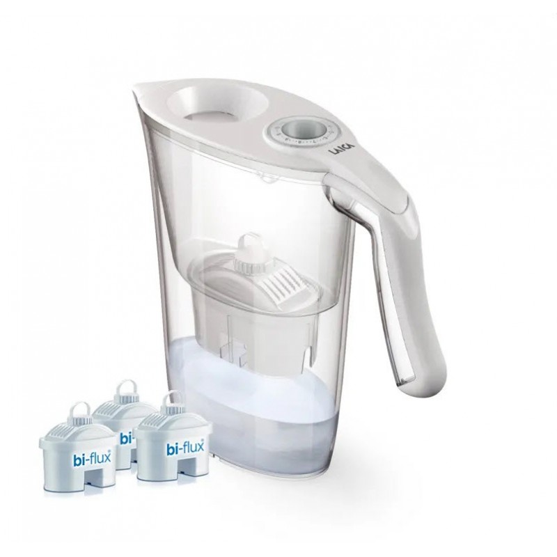 Filtračná kanvica vo zvýhodnenej sade • Objem: 2,3 l / Objem filtrovanej vody: 1,2 l • Životnosť filtra: 150 l vody / 30 dní • Obsahuje 3 kusy filtra Bi-flux Myslite na svoje zdravie. Filtračná kanvica LAICA vám ponúka najpohodlnejší spôsob filtrovania pitnej vody v domácnosti. Zaistí vám dostatočný objem čistej a chutnej vody každý deň. Vďaka filtrácii získate lacno a jednoducho vodu bez škodlivín, nepríjemného zápachu alebo pachuti chlóru. Máte ju radi poriadne vychladenú? Kanvica sa vojde do každej bežnej chladničky. Unikátna Bi-flux filtračná patróna z aktívneho uhlia zanechá vodu priezračne čistú, ale zároveň v nej ponechá optimálne množstvo minerálov.Kľúčové vlastnosti Objem: 2,3 l / Objem filtrovanej vody: 1,2 l Ergonomická rukoväť Praktický QuickFill otvor (naplnenie bez otvárania veka) Bi-flux filter redukuje ťažké kovy, chlór, vodný kameň a herbicídy Životnosť filtra: 150 l nebo 30 dní Indikátor výmeny filtru: mechanický Vyrobené z BPA free plastu V balení 3 kusy filtra Bi-flux