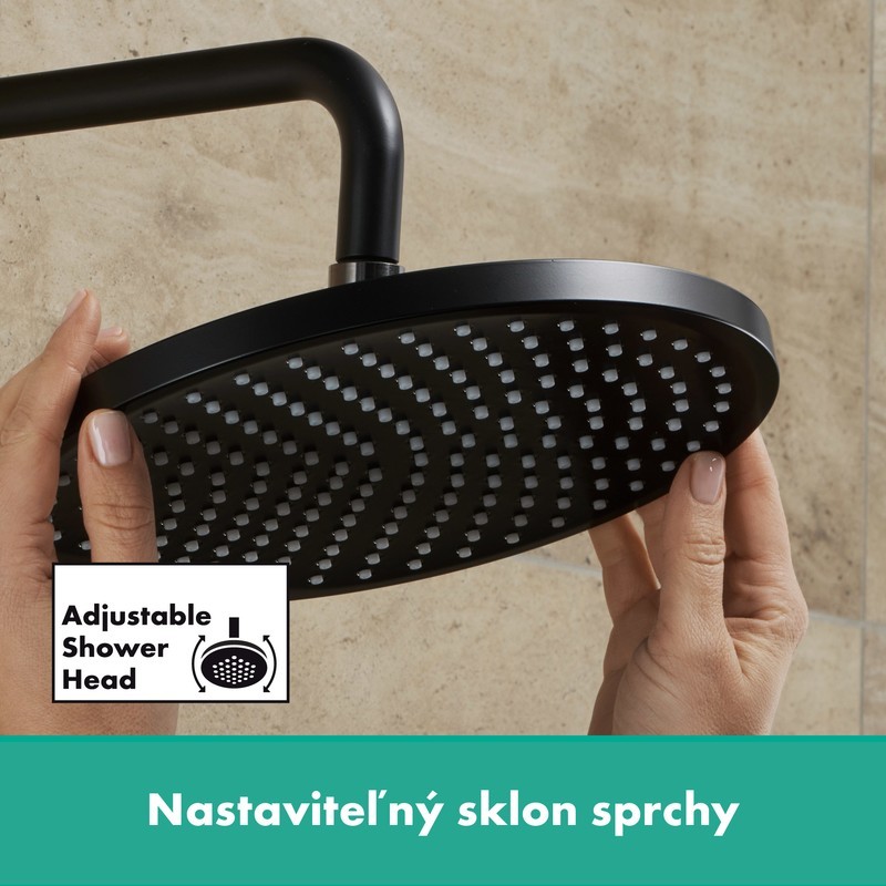 Uhol sprchovej hlavice je možné s cieľom dosiahnuť maximálny komfort pri sprchovaní nastaviť pomocou guľového kĺbu. Vďaka tomu je možné sprchu prispôsobiť priestorovým pomerom.