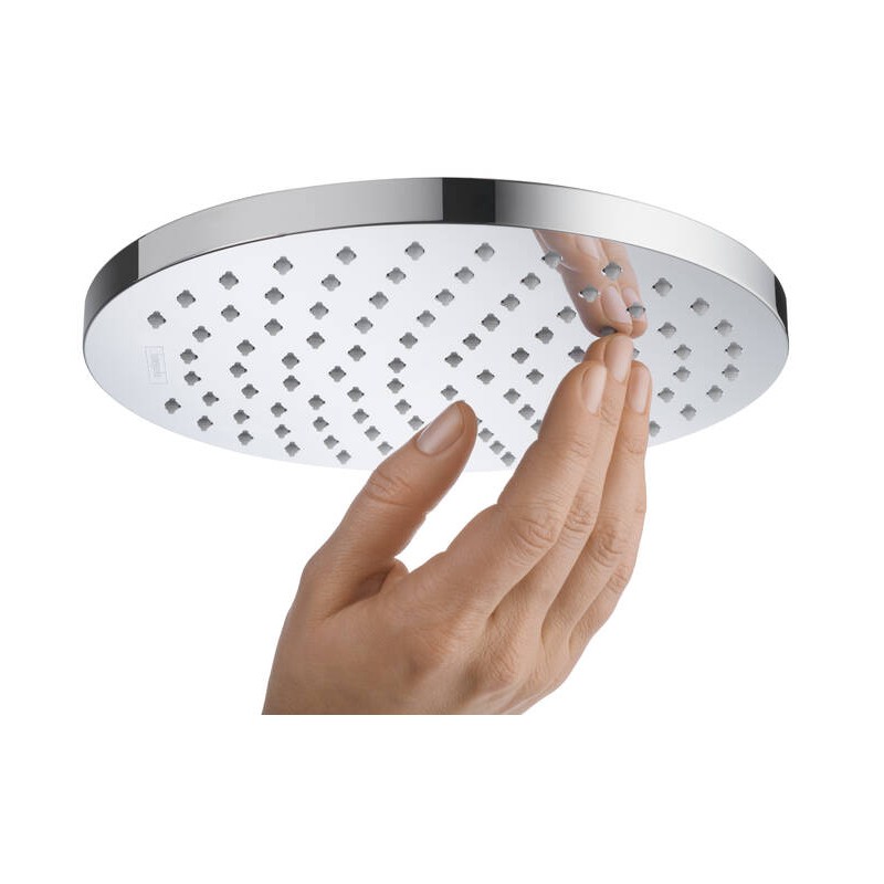 Používateľa zakaždým znovu ohromí trvalý lesk brilantného chrómového povrchu s nízkymi nárokmi na údržbu, čo zaručí dlhodobú spokojnosť so sprchou. Táto demontovateľná horná sprcha sa ľahko čistí: Vodný kameň je možné odstrániť utrením silikónových trysiek sprchovej hlavice (QuickClean).