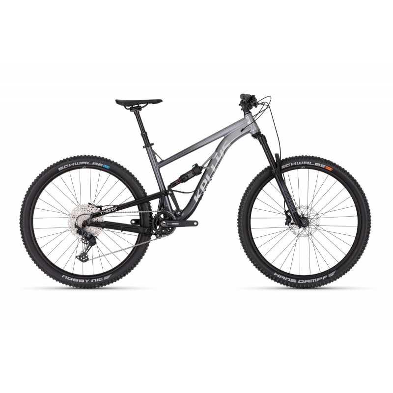 Objavte neuveriteľný výkon a komfort s celoodpruženým bicyklom KELLYS THORX 30 29”. Tento model je určený pre tých, ktorí hľadajú dobrodružstvo a chcú zdolávať nové výzvy. Rám KELLYS Allmountain s pokročilým systémom odpruženia Think Link poskytuje 140 mm zadný zdvih, čo vám umožní hladko zdolávať aj ten najnáročnejší terén. Vnútorné vedenie káblov a pevná os zaručujú elegantný vzhľad a maximálnu tuhosť. Vidlica ROCK SHOX 35 GOLD RL so zdvihom 150 mm, technológiou DebonAir a systémom Motion Control vám ponúkne vynikajúcu kontrolu a pohodlie na každom zjazde. Hydraulické kotúčové brzdy SHIMANO SLX M7100 zaručujú spoľahlivý a presný brzdný výkon aj v tých najnáročnejších podmienkach. S radením Shimano SLX a kazetou s rozsahom 10-51T budete mať vždy k dispozícii ideálny prevod pre akýkoľvek terén. Plášte SCHWALBE Hans Dampf Evo Super Trail vpredu a SCHWALBE Nobby Nic Evo Super Trail vzadu poskytujú vynikajúcu trakciu a stabilitu na každom povrchu. Teleskopická sedlovka je už len čerešničkou na torte! Tento bicykel je pripravený na každú výzvu, ktorú mu postavíte do cesty. Pripravte sa na nezabudnuteľný zážitok z jazdy!Technický popis: rám KELLYS Allmountain 29 / Think Link suspension system, 140mm rear travel, tapered HT, internal routing, 12x148mm Boost thru axle veľkosť rámu M (S/T 440mm, L 607mm) / L (S/T 500mm, L 625mm) vidlica ROCK SHOX 35 GOLD RL (29) Boost, 150 mm, DebonAir / Motion Control / Maxle Stealth 15 mm thru axle hlavové zloženie FSA 1.5 integrated stredové zloženie SHIMANO Press-Fit BB71-41A kľuky SHIMANO Deore MT510-1 (34T) – dĺžka 175 mm prehadzovačka SHIMANO SLX M7100 (direct mount) radenie SHIMANO SLX SL-M7100-IR Rapidfire Plus (I-Spec EV) počet prevodov 12 pastorky kazety SHIMANO CS-M6100-12 (10-51T) reťaz SHIMANO CN-M6100 (114 links) brzdy SHIMANO SLX M7100 Hydraulic Disc brzdové páky SHIMANO SLX BL-M7100 náboje SHIMANO Deore MT410-B Disc Center Lock (15×110 mm / 12×148 mm / 32 holes) ráfiky KLS Valor 2 Disc 622×27 (32 holes) predný plášť SCHWALBE Hans Dampf Evo Super Trail 60-622 (29×2,35) Tubeless Easy, ADDIX Soft, folding zadný plášť SCHWALBE Nobby Nic Evo Super Trail 60-622 (29×2.35) Tubeless Easy, ADDIX Soft, folding predstavec RACE FACE Ride 35 – diam 28.6 mm / bar bore 35 mm / 6° / dĺžka 50 mm riadidlá RACE FACE Ride 35 RiseBar – diam 35 mm / rise 20 mm / šírka 760 mm sedlovka KS e20-i Remote Telescopic – diam. 30,9 mm / dĺžka 474 mm, zdvih 150 mm sedlo fizik Taiga S-alloy rails pedále KLS Master výplet kolies stainless steel black rukoväte KLS Poison brzdové kotúče 180 mm front / 180 mm rear pevná os ROCK SHOX Maxle Stealth 15×110 mm vpredu / Mr.control 12×177 mm vzadu príprava na zadný nosič nie príprava na stojan nie hmotnosť Váženie bicykla neprebieha podľa žiadneho zavedeného štandardu, ktorého by sa držali všetci výrobcovia. Niektoré značky uvádzajú umelo zníženej hmotnosti. Na zistenie váhy bicykla je potrebné nechať
