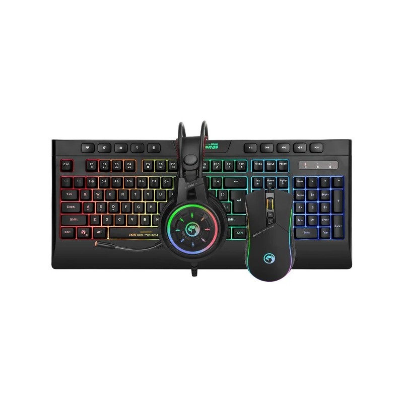 Herná sada 3 v 1 so softwarom - klávesnica, myš slúchadlá Super kombinácia produktov, ktoré potrebuje každý hráč v modernom poňatí s RGB podsvietením. Ovládni každou hru s multimediálnu klávesnicu s CZ/SK rozložením kláves, na ktoré si môžeš nahrať vlastný mód podsvietenia a upraviť si intenzitu alebo rýchlosť efektu podsvietenia, myší s vyšším profilom pre podporu dlane a šiestimi úrovňami rozlíšenia a so 7.1 slúchadlami so silnými basmi a s mikrofónom.Marvo sada CM305 - klávesniceHerná klávesnica Táto herná klávesnica s CZ/SK rozložením kláves obsahuje taktiež multimediálne klávesy pre ovládanie média playeru, spustenie e-mailu, spustenie internetu, spustenie kalkulačky atď. Vďaka antighostingu pre 26 kláves je jej ovládanie presné a aj v tých najnáročnejších bitkách nezamrzne. Pre zvýšenie pohodlia pri jej používaní je dolná časť pretiahnutá do podložky pod zápästie. Software klávesnice umožňuje nahratie vlastného módu podsvietenia alebo priradenie jednotlivým klávesám funkcie myši (dvojklik atď.). Samozrejmosťou je možnosť ovládania intenzity a rýchlosti efektu podsvietenia.Marvo sada CM305 - myšHerná myš Optická herná myš má sedem programovateľných tlačidiel, ktorým môžete cez software nastaviť funkciu presne takú, akú potrebujete pre jednotlivé hry. Bočné časti myši majú štrukturovaný povrch, takže po nich ruka nekĺže a vy sa môžete spoľahnúť na svoj pevný úchop. Vďaka pogumovanému koliesku bude scrollovanie webových stránok pohodlné a veľmi plynulé. Uľahčenie práce s myšou prináša nie len tlačidlo pre zmenu DPI, ale taktiež tlačidlo pre zmenu módu podsvietenia. Ľahko si tak zmeníte typ podsvietenia aj behom hry na jedno kliknutie.Marvo sada CM305 - sluchátka7.1 herné slúchadlá Uzatvorené slúchadlá s 7.1 virtuálnym priestorovým zvukom vám ponúknu poriadny zvuk s extra silnými basmi. Cez software si ľahko nastavíte parametre priestorového zvuku a taktiež basov. Mäkké náušníky dokonale obklopia ucho a stlmia okolitý hluk. Pohodlná čelenka sa prispôsobí každej hlave, takže ju takmer neucítite. Mikrofón slúchadiel si nastavíte presne do sklonu, aký potrebujete, aby vás spoluhráči perfektne počuli.Špecifikácia klávesnice Typ klávesnice membránová Počet kláves 114 Životnosť kláves až 10 mil. stlačení Dĺžka trasy klávesy 3.6 ± 0.2 mm Sila stlačení 52 ± 7 g Rozloženie CZ/SK Antighosting 26 kláves Podsvietenie RGB Pripojenie USB Dĺžka kábla 1.5 m Rozmery 461 x 198 x 37 mmŠpecifikácia myši Senzor optický Počet tlačidiel 7 (programovateľných) Životnosť tlačidiel 5 mil. stlačení Rozlíšenie 800/1600/2400/3200/4000/4800 (přes software až 6400) Podsvietenie RGB Pripojenie USB Dĺžka kábla 1.6 m Rozmery 131 x 70 x 42 mmŠpecifikácia slúchadiel Zvuk 7.1 virtuálny Frekvenčný rozsah 20 Hz - 20 kHz Priemer reproduktora 50 mm Citlivosť slúchadiel 105 dB ± 3 dB Impedancie 32 ? Podsvietenie rainbow Typ mikrofónu všesmerový Veľkosť mikrofónu 4 x 1.5 mm Citlivosť mikrofónu -42 dB Pripojenie USB Dĺžka kábla 2.1 m