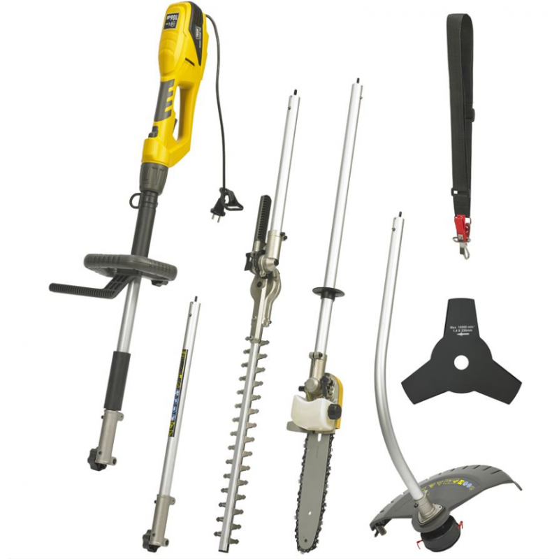 Elektrický multistroj TEXAS SMART COMBI 100 5-v-1 s rovnakým výkonom ako stroj na benzínový pohon. Jeden stroj, ktorý je súčasne vyžínačom trávy, krovinorezom, motorovou pílou a plotostrihom, kombinovaný s predlžovacím hriadeľom, ktorý vám umožní dostať sa až na 2,7 m. Nožnice na živý plot sú nastaviteľné v uhle 90 - 45 stupňov Ergonomický dizajn bol zohľadnený a keďže Smart Combi 100 je poháňaný elektricky, používateľ sa vyhne silným vibráciám a minimálnej údržbe. Navyše s hmotnosťou 2,5 kg (bez príslušenstva) je stroj o viac ako polovicu ľahší ako podobné stroje na benzínový pohon. A samozrejme, úroveň zvuku je príjemnejšia. Šírka struny 36 cm, 3-zubá čepeľ 23 cm, reťazová píla 25 cm, plotostrih 41 cm a predlžovací hriadeľ 55 cm. Charakteristika a technické údaje:Výkon: 900 W Typ motora: Elektrický 230V Štartér: elektrický Dĺžka noža: 41 cm Čepeľ (počet zubov): 3 zuby Pracovná šírka (čepeľ): 23 cm Strihacia hlava: Tap n Go Pracovná šírka (struna): 36 cm Hrúbka čepele: 1,4 mm Lišta: Oregon Dĺžka lišty: 25 cm Olej na reťaz: 0,06 litra Rukoväť: zakrivená Hrúbka konára: max. 20 mm Hlučnosť: 106 dB Hrúbka struny: 1,6 mm Hmotnosť: 3,7-4,4 kg