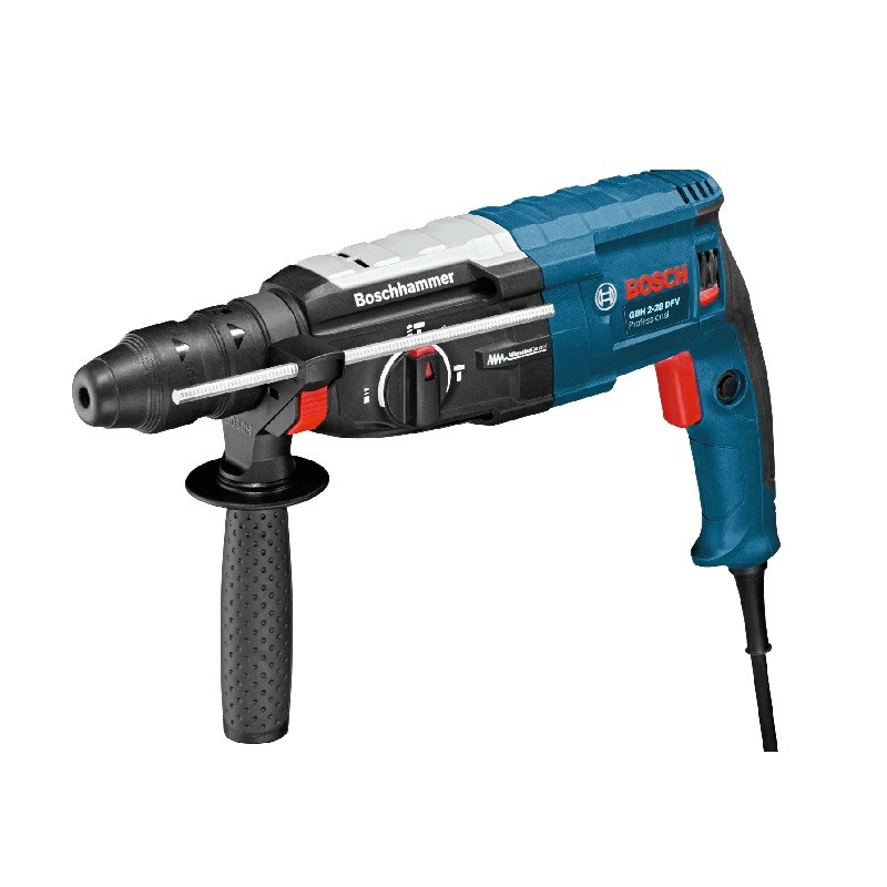 Kombinované vŕtacie kladivo Bosch GBH 2-28 F s aktívnym znižovaním vibrácií umožňujúci efektívnejšiu a pohodlnejšiu prácu s náradímHlavné prednosti:Systém KickBack Control - okamžité vypnutie motora pri neočakávanom zablokovaní náradia zvyšuje bezpečnosť užívateľa Príklepové vŕtanie do betónu, muriva a kameňa Vŕtanie bez príklepu do dreva, kovu, keramiky a možnosť skrutkovanie Ľahké sekacie práce do muriva a ľahčených materiálov s možnosťou natočenia sekáča pomocou funkcie Variolock Pravý / ľavý chod Kovový kryt prevodovky - najvyššia kvalita a robustnosť Otočné uhlíky - konštatný výkon pri pravom i ľavom chode Guľový čap kábla proti zlomeniu Bezpečnoství spojka Plynulá regulácia otáčok Ochrana proti zaseknutiu nástroja KickBack Control Súčasťou dodávky: Prídavná rukoväť, hĺbkový doraz 210 mm, utierka na náradie, rýchloupínacie skľučovadlo, výmenné skľučovadlo SDS-plus, plastový kufor