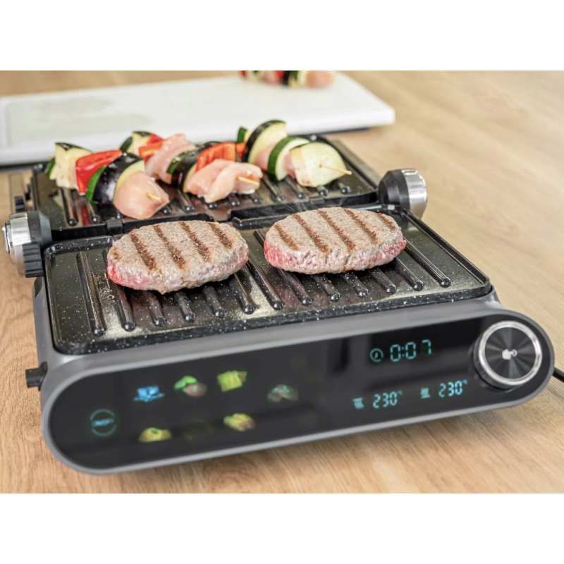 Aktivovaním BBQ funkcie sa gril otvorí na plných 180 stupňov, čím získate dvojnásobnú grilovaciu plochu. Perfektné pre prípravu väčšieho množstva jedla naraz alebo keď chcete grilovať rôzne ingrediencie súčasne. Využite gril ako klasický stolový gril a pripravte si grilovačku aj doma!