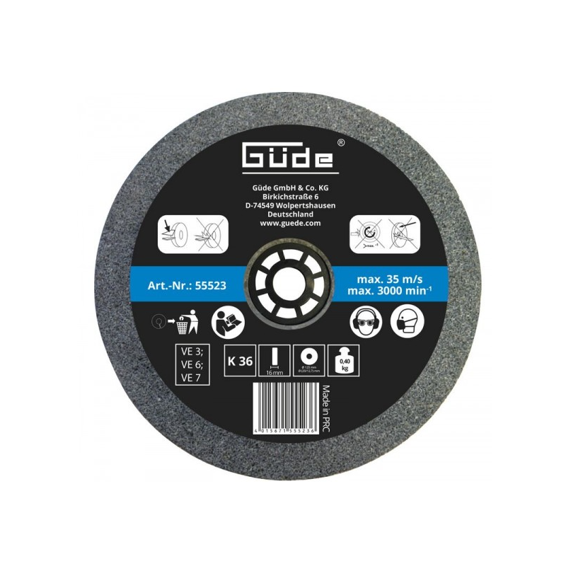 Brúsny kotúč na Stolovú dvojkotúčovú brúsku GDS 125-12 (kód tovaru: 55234).Priemer kotúča: 125 mm Vnútorný otvor: 20 mm s adaptérom na: 12,7 mm Šírka kotúča: 16 mm Zrnitosť: K36