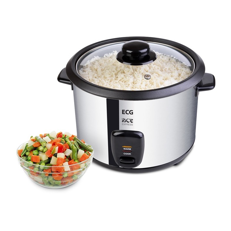 Ryžovar ECG RZ 19 vhodný na prípravu všetkých druhov ryže, objem 1,8 l, max. 1500 g ryže (hmotnosť pred uvarením), vyberateľná nádoba s nepriľnavým povrchom, aut. udržovanie teploty (až 5 hodín), bezpečnostný spínač, ochrana proti prehriatiu, príkon 700 W