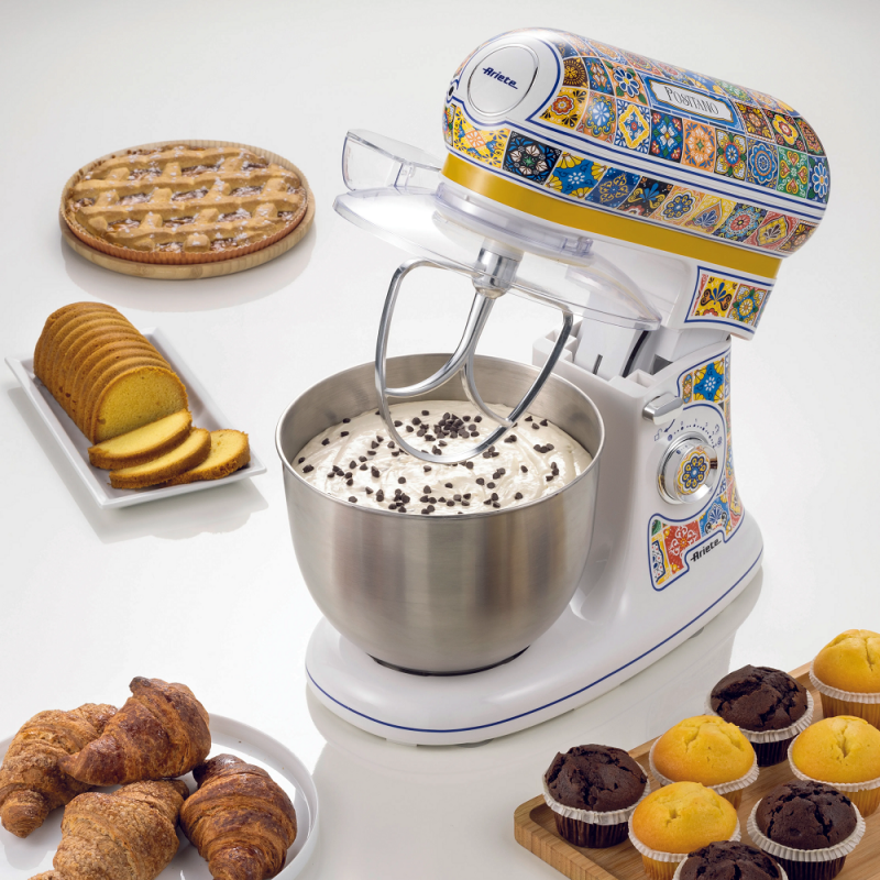 Kuchynský robot Ariete Positano 1588/PO je ideálnym pomocníkom pre každú modernú domácnosť, kde sa rada pripravuje domáca pečiva, cestoviny či dezerty. Vďaka výkonnému motoru s maximálnym príkonom 1 200 W a veľkorysej misy s objemom 5,5 litra zvládne aj náročnejšie úlohy, ako je miesenie hustého cesta na chlieb alebo šľahanie väčších dávok krémov.