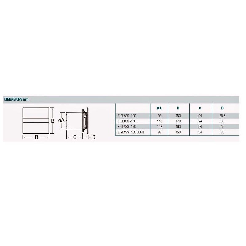 Bytový ventilátor so skvelým moderným dizajnom - Strieborný sklenený čelný panel. Prevedenie s časovým dobehom (Timer) 0-15 min.