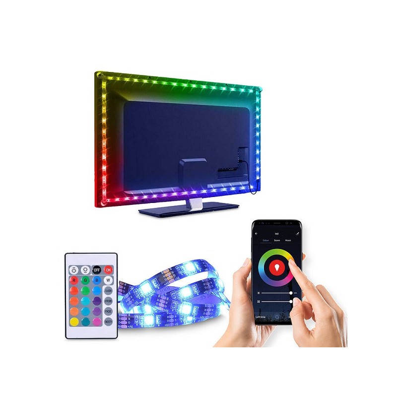 LED SMART WIFI pásik je ovládaný chytrým telefónom pomocou aplikácie v ČJ, AJ a ďalších jazykoch. Podporuje Wifi 2,4GHZ, Android 4.1 a vyšší IOS 8.0 a vyšší. Umožňuje nastaviť rôzne farby svetla (RGB) a intenzitu svetla. LED pásik je možné ovládať aj diaľkovým ovládačom, ktorý je súčasťou balenia. svetelný tok max. 260lm/m dlžka: 4 x 50 cm vhodné pre TV s uhlopriečkou 32-65" (80-165cm) teplota chromatickosti:RGB (viacfarebná) podpora a kompatibilita: Wifi 2,4GHZ, Androi 4,1 a vyšší, IOS 8,0 a vyšší, TuyaSmart app, SmartLife app, Amazon Alexa, Google Home životnosť LED: 30.000 hodín krytie: IP20 obojstranná samolepiaca 3M páska na zadnej strane svetelný kužeľ: 120° index podania farieb: CRi80 napájanie: USB 5V, 1200mA 1x wifi a IR RGB controller 1x diaľkový ovládač flexibilné aj pevné konektory súčasťou balenia farva pásky: čierna