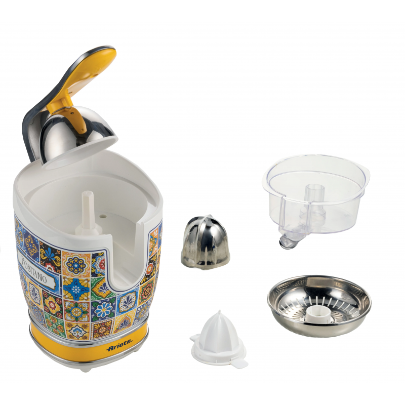 Ariete Positano je vybavený dvoma veľkosťami kužeľov, vďaka čomu bez problémov spracujete malé citróny aj veľké grapefruity. Inteligentný systém zaručuje maximálne využitie ovocia a získanie každej kvapky šťavy. Nerezové lisy sú odolné proti korózii a jednoducho sa čistia, čo oceníte pri každodennom používaní.