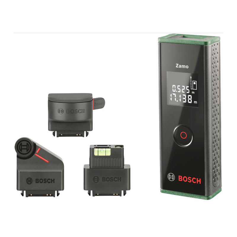 • Verzia Zamo: 3 • Laserová dióda: 635 nm • Trieda lasera: 2 • Rozsah merania: 0,15 – 20,00 m • Presnosť merania, typ.: ± 3,0 mm • Čas merania, typ.: 0,5 s • Čas merania, max.: 4 s • Akumulátor: 2x 1,5 V LR03 (AAA) • Automatické vypínanie: 5 min • Hmotnosť: 0,085 kgbosch-naradie-obsah-dodavky• Zamo • 2x 1,5 V batéria LR03 (AAA) • Líniový nadstavec • Výsuvný merací adaptér • Kolieskový adaptér • Balenie kartónbosch-naradie-prednosti• Adaptabilný laserový merací prístroj meria presne do vzdialenosti až 20 m • Nové rozhranie integruje pásmo, koliesko a líniový adaptér na rozličné spôsoby použitia • Na meranie vzdialeností, objektov a plôch, ako aj na vyrovnanie predmetov na stene • Vhodné najmä na meranie voľne stojacich objektov a nepravidelných povrchov • Jednoduché ovládanie jediným tlačidlom umožňuje ľahké používanieFunkcie:• Výpočet plôch, objemov • Dlhodobé meranie • Meranie dĺžky • Adaptabilný systém • Meranie obvodu