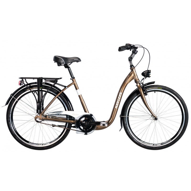 Objavte dokonalú kombináciu štýlu a funkčnosti s mestským bicyklom KENZEL AVENUE Classic. Tento elegantný bicykel v atraktívnej hnedej farbe je ideálnym spoločníkom pre každodenné cestovanie po meste. Vďaka 3-stupňovému preraďovaniu Shimano Nexus a ľahkému hliníkovému rámu vám ponúka pohodlnú a plynulú jazdu v mestskom prostredí.