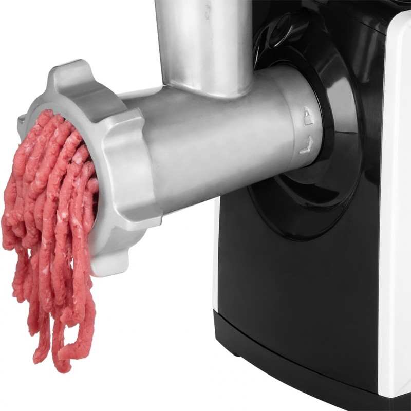 Jednou z najužitočnejších funkcií je REVERS – funkcia spätného chodu motora. Ak sa počas mletia zachytí šľacha alebo spojivové tkanivo, stačí aktivovať reverzný chod a motor sa roztočí opačným smerom, čím sa prekážka uvoľní. Táto funkcia výrazne uľahčuje prácu a zabraňuje zablokovaniu mlynčeka, čo by si inak vyžadovalo zdĺhavé čistenie a rozobratie zariadenia.