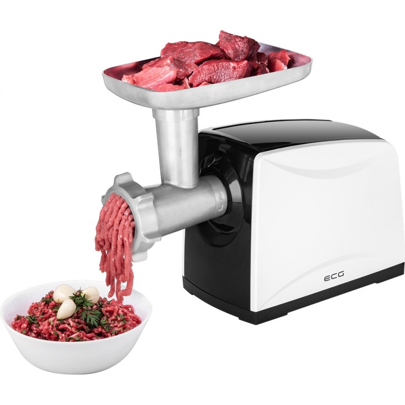 ECG MG 2510 Power Mlynček na mäso Vhodné na mletie rôznych druhov mäsa a výrobu klobás Príslušenstvo na strúhanie zeleniny, ovocia a strúhanky Mlecí nôž a kotúče vyrobené z odolnej ocele Max. príkon motora: 500 W Vhodné na mletie rôznych druhov mäsa a výrobu klobás Príslušenstvo na strúhanie zeleniny, ovocia a na výrobu strúhanky 1 rýchlosť Funkcia spätného chodu motora – REVERS Samoostriaca čepeľ z nehrdzavejúcej ocele Kovové prevodové kolesá Mlecí nôž a kotúče vyrobené z odolnej ocele 3 vymeniteľné mlecie kotúče: Jemný (3 mm)/Stredný (5 mm)/Hrubý (8 mm) Misa na plnenie, vstupné, výstupné hrdlo a závitovkový hriadeľ vyrobený z pevnej hliníkovej zliatiny Stláčadlo Nadstavce na plnenie klobás Protišmykové nožičky Ľahká údržba Dĺžka kábla: 1 m Príslušenstvo: Miska na mäso Stláčadlo Strojček s hrdlom Kotúč (jemný, 3 mm) Kotúč (stredný, 5 mm) Kotúč (hrubý, 8 mm) Závitovka Samoostriaca čepeľ z nehrdzavejúcej ocele Poistná matica Nadstavec na klobásy Nadstavec na kebbe Separátor Strojček strúhadla so stláčadlom Strúhadlo hrubé Strúhadlo na plátky Strúhadlo jemné Strúhadlo extra jemné Menovité napätie: 220 – 240 V~ 50 – 60 Hz Max. príkon motora: 500 W