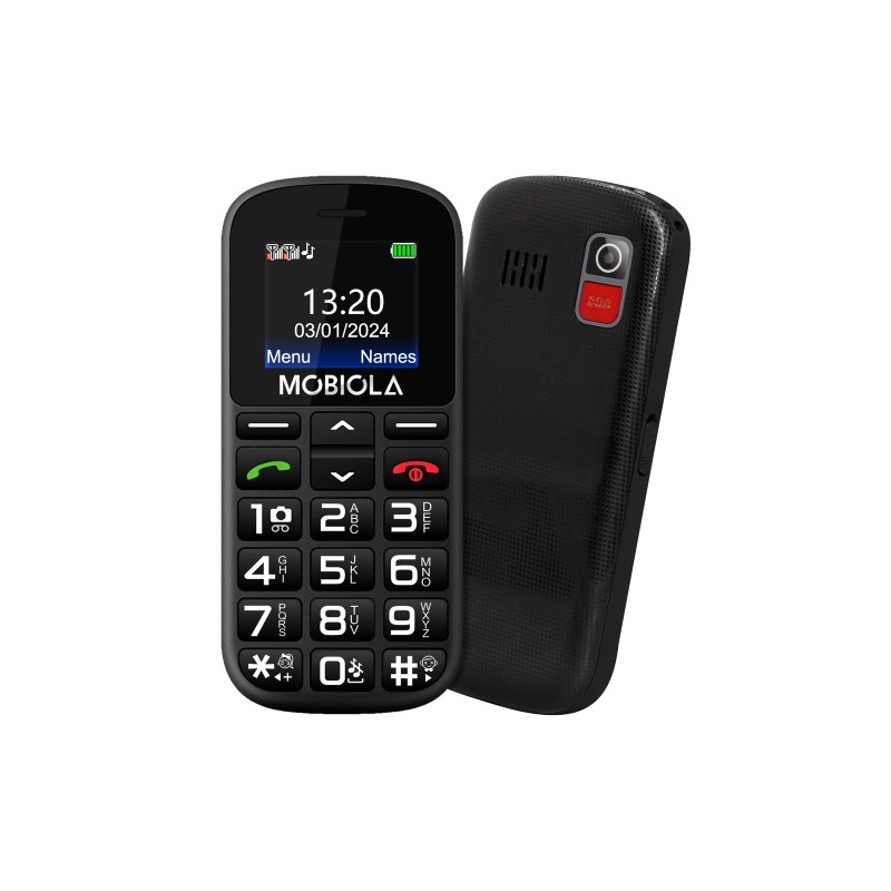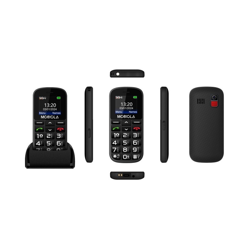 Mobiola MB200 Black - 1,77“ displej (128x160 pix), DualSIM podpora - 2x mini SIM slot + extra microSD slot, 0,3 MP SW fotoaparát, Video záznam, FM rádio, LED svetlo, Kalkulačka, Budík, SOS tlačidlo, stolná nabíjačka, Pamäť na 200 kontaktov, 50 SMS, microSD do 32GB, 1400 mAh batéria Li-Ion, 2G pripojenie, Bluetooth v 3.0, 3.5 mm audio jack, USB-C konektor.Parametre: Operačná pamäť / RAM [MB] 32 Vnútorná pamäť / ROM [MB] 24 Konštrukcia telefónu klasická Stupeň krytia žiadne Farba čierna Výška [mm] 123.6 Šírka [mm] 55.5 Hrúbka [mm] 14.6 Hmotnosť [g] 94 Veľkosť displeja [palce] 1.8 Rozlíšenie displeja [pix] 128x160 Typ panelu TFT Odolnosť skla Nie Kapacita batérie [mAh] 1800 Vymeniteľná batéria Áno Rozlíšenie hlavného fotoaparátu [Mpix] 0.08 Pamäťová karta - podpora Áno Pamäťová karta max. podporovaná kapacita [GB] 32 Slot na pamäťovú kartu Ano, samostatný Typ SIM karty mini Dual SIM Áno Typ Dual SIM 2x SIM slot, 1x slot na pamäťovú kartu Procesor MT6261M Operačný systém bez operačného systému Podpora siete 2G Wi-Fi Nie Verzia Bluetooth 3.0 3.5mm jack Áno Funkcie LED svietidlo, Kalendár, SOS režim, Budík, Kalkulačka, Blokovanie kategórii menu, Hovoriaca klávesnica, Záznam videa, Záznam zvuku FM rádio Áno SOS tlačidlo Áno Nabíjací stojan Áno Notifikačná dióda Nie Konektor 3.5 mm jack, microUSB, USB - C