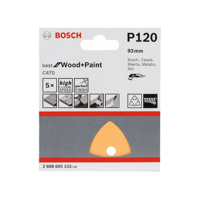 Bezchybné povrchy vďaka jedinečnému spôsobu perforovania s použitím matrice S najmodernejšou dokončovacou technikou sú zaručené čisté rezy hrán a precízne perforované otvory v rovnako vysokej kvalite Bez úbytku kvality, s čistými a temer hladkými otvormi, bez vylamovania zŕn S vynikajúcou štruktúrou povrchu špeciálnym flexovaním - tzv. lineárny proces multi-flexovania Flexovanie: narušenie celistvého obrazu brúsnych zŕn na dosiahnutie rovnomernej elasticity celého brusiva - veľmi dôležitá vlastnosť najmä pri listoch a zvitkoch brusiva určených pre ručné brúsenie Brúsne listy majú velkronové upínanie: s velúrom Direct Force sa prenášajú priamo sily z brúsneho taniera na brúsne listy pre maximálny úberový výkon pri brúsení na akomkoľvek povrchu Vhodné na brúsenie s trojuholníkovými (delta) brúskami značky Bosch, Casals, Makita, Metabo, Skil Vhodné na brúsenie s náradím Multi-Cutter značky Bosch,