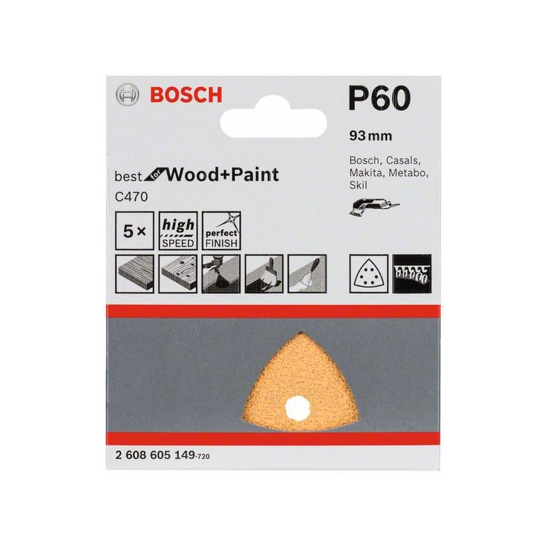 Bezchybné povrchy vďaka jedinečnému spôsobu perforovania s použitím matrice S najmodernejšou dokončovacou technikou sú zaručené čisté rezy hrán a precízne perforované otvory v rovnako vysokej kvalite Bez úbytku kvality, s čistými a temer hladkými otvormi, bez vylamovania zŕn S vynikajúcou štruktúrou povrchu špeciálnym flexovaním - tzv. lineárny proces multi-flexovania Flexovanie: narušenie celistvého obrazu brúsnych zŕn na dosiahnutie rovnomernej elasticity celého brusiva - veľmi dôležitá vlastnosť najmä pri listoch a zvitkoch brusiva určených pre ručné brúsenie Brúsne listy majú velkronové upínanie: s velúrom Direct Force sa prenášajú priamo sily z brúsneho taniera na brúsne listy pre maximálny úberový výkon pri brúsení na akomkoľvek povrchu Vhodné na brúsenie s trojuholníkovými (delta) brúskami značky Bosch, Casals, Makita, Metabo, Skil Vhodné na brúsenie s náradím Multi-Cutter značky Bosch.