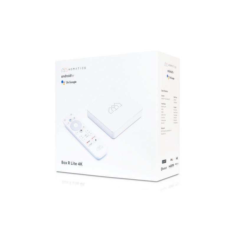 Homatics Box R Lite patrí medzi najvýkonnejšie 4K multimediálne zariadenia na trhu, ktorý z obyčajnej TV spraví výkonný smart TV.Operačným systémom je oficiálny Android TV 11. O rýchle reakcie sa postará výkonný procesor Amlogic S905Y4 pre vyššiu rýchlosť a lepší zážitok z používania, ktorému robí podporu až 2GB DDR RAM a 32GB eMMC Flash. bsahuje hlasového asistenta Google, predinštalovaný YouTube, Netflix, Google play obchod, Prime Video, zabudovaný chromecast a podporuje najpoužívanejšie aplikácie ako napríklad KODI, HBO GO, SledovanieTV, Antik TV, Magio GO, Skylink a ďalšie. Diaľkové ovládanie slúži aj ako mikrofón pre hlasového asistenta Google.Homatics Box R Lite poteší vynikajúcou výbavou a konektivitou akou je aj Ethernet konektor, USB Type C, 2x USB 2.0, S/PDIF optický digitálny audio výstup, čítačku pre MicroSD karty...Technická špecifikácia Operačný systém: Android TV 11 Čipová sada: Amlogic S905Y4 16.5k DMIPS 2 GB DDR RAM Flash eMMC 32GB Ethernet 100Mbps Wi-Fi 5 2.4G/5G Bluetooth 5.0 HDMI 2.1 / HDCP 2.2 Video rozlíšenie: 4K, 1080i/p, 720p, 576i/p, 480i/p Podpora kodeku AV1 Dolby Audio 1X USB Type-C, 2x USB 2.0 Slot pre microSD kartu S/PDIF optický digitálny audio výstup Video File Format: .mkv, .wmv, .mpg, .mpeg, .dat, .avi, .mov, .iso, .mp4, .rm, .jpg Video decoding: AV1 MP-10@L5.1 up to 4Kx2K@60fps VP9 Profile-2 up to 4Kx2K@60fps H.265 HEVC MP-10@L5.1 up to 4Kx2K@60fps AVS2-P2 Profile up to 4Kx2K@60fps H.264 AVC HP@L5.1 up to 4Kx2K@30fps MPEG-4 ASP@L5 up to 1080P@60fps (ISO-14496) WMV/VC-1 SP/MP/AP up to 1080P@60fps AVS-P16(AVS+) /AVS-P2 JiZhun Profile up to 1080P@60fps MPEG-2 MP/HL up to 1080P@60fps (ISO-13818) MPEG-1 MP/HL up to 1080P@60fps (ISO-11172) RealVideo 8/9/10 up to 1080P@60fps Audio File Format: MP3, AAC, WMA, RM, FLAC, Ogg and programmable with 7.1/5.1 down-mixing Rozmery (Š × V × H): 96 x 96 x 23 mm