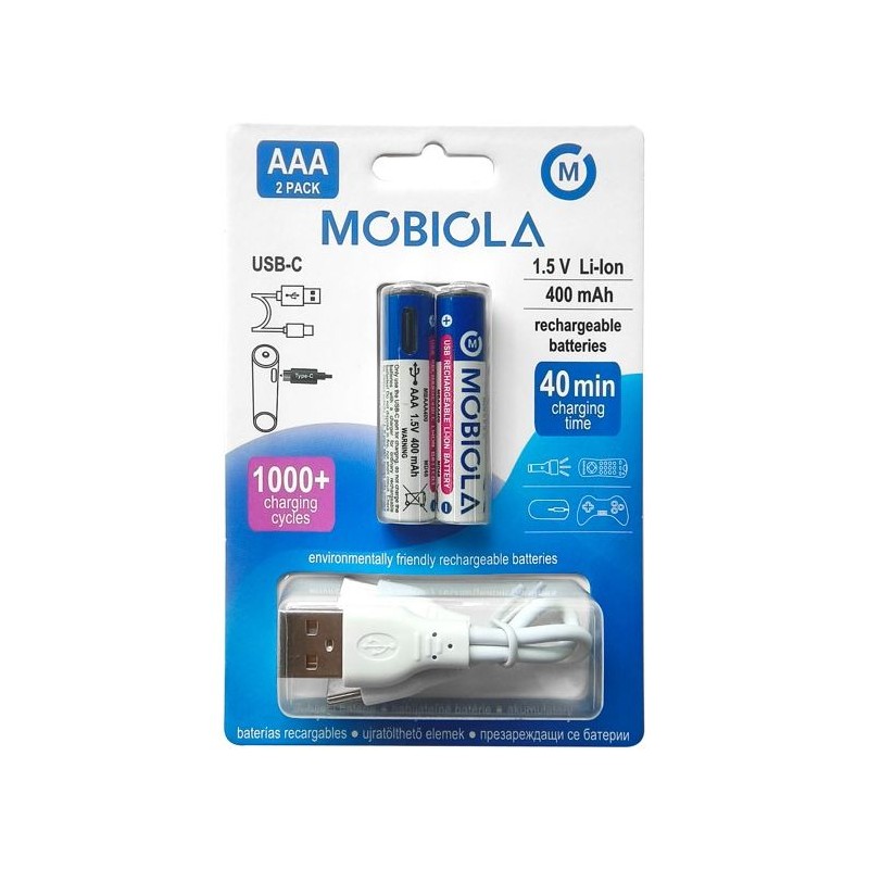 Parametre:Nabíjateľné batérie AAA, USB-C, 400 mAh, 1.5 V - 2 ks Nabíjecí baterie AAA, USB-C, 400 mAh, 1.5 V - 2 ks Nabíjateľné batérie AAA, USB-C, 400 mAh, 1.5 V - 2 ks Kód produktu: MBAAA400 EAN: 8594203271180 Cena bez DPH: 4,50 € Cena bez DPH + PHE: 4,50 € PHE: 0,00 € Praktické, ekologické as dlhou životnosťou – to je budúcnosť každej modernej domácnosti. Nabíjacie batérie MOBIOLA s USB-C nabíjacím káblom kombinujú výhody klasických nabíjacích batérií s moderným a pohodlným riešením nabíjania. Plná kapacita už za 40 minút a životnosť až 1000 nabíjacích cyklov vám ušetrí náklady na jednorazové batérie a zaistí výrazne dlhšiu životnosť. Skladom: 10 Pridať do zoznamu prianí Pridať na porovnanie 1Vložit do košíka Doprava zadarmo od 200,00 € Popis Rýchle a jednoduché nabíjanie Tieto batérie sú navrhnuté tak, aby vyhovovali moderným potrebám a prinášali praktické riešenia. Vďaka USB-C konektoru priamo na tele batérie sa môžete rozlúčiť s nepohodlnými externými nabíjačkami a užívať si bezstarostné nabíjanie kedykoľvek a kdekoľvek. S USB káblom, ktorý je súčasťou balenia, získate rýchle a pohodlné nabíjanie bez potreby ďalšieho príslušenstva. Plne nabité sú batérie už za 40 minút, takže vy môžete svoje zariadenia opäť používať.Praktické riešenie pre každodenné použitie Nabíjacie batérie MOBIOLA sú ideálnou voľbou pre každodenné použitie v domácnosti. Či už ich budete používať v diaľkových ovládačoch, elektronických hračkách, v klávesniciach či myšiach počítačov alebo iných zariadeniach, poskytnú spoľahlivý výkon a jednoduché použitie. Kapacita batérií AAA je 400 mAh, čo zaručuje dlhodobý zdroj energie pre všetky vaše zariadenia.Ekologická voľba pre zodpovedný životný štýl Nabíjacie batérie MOBIOLA vám umožnia šetriť peniaze pri každom dobití a zároveň chrániť prírodu. Znížením množstva odpadu z jednorazových batérií prispievate k ochrane životného prostredia a udržateľnosti.Vlastnosti: • Nabíjacia batéria, 2dielna súprava • Kábel USB-C súčasťou balenia • Vhodné do rôznych domácich spotrebičov • Jednoduché nabíjanie s nabíjacím káblom USB-C, dokáže nabíjať 2 batérie naraz • Jednoducho pripojte k akémukoľvek USB portu, nevyžadujú sa žiadne špeciálne nabíjačky • LED indikátor zobrazuje priebeh nabíjania • Dlhodobé využitie a životnosť – batéria môže byť opakovane dobíjaná až 1000 krát • Nabitie do 40 minút • Kapacita 400 mAh • Neprítomnosť pamäťového efektu“ – batéria je schopná plného nabitia aj pri čiastočnom vybití. • Ekologická alternatíva k tradičným AAA batériám