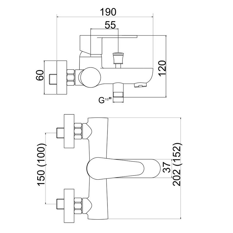 Kvalitná a odolná, keramická kartuš 35 mm s 5 ročnou zárukou. Prvotriedne chrómové prevedenie. Vaňová nástenná batéria s rozostupom 100 mm a kovovým aretačným prepínačom.