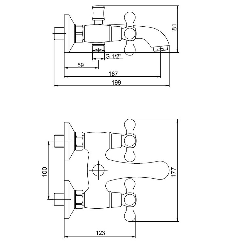 Kvalitné a odolné keramické ventily s 5 ročnou zárukou. Prvotriedne chrómové prevedenie. Vaňová nástenná batéria s rozostupom 100 mm a kovovým prepínačom.