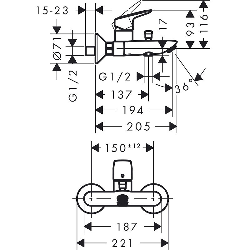 Hansgrohe Logis páková vaňová batéria, na stenu, chróm 71400000