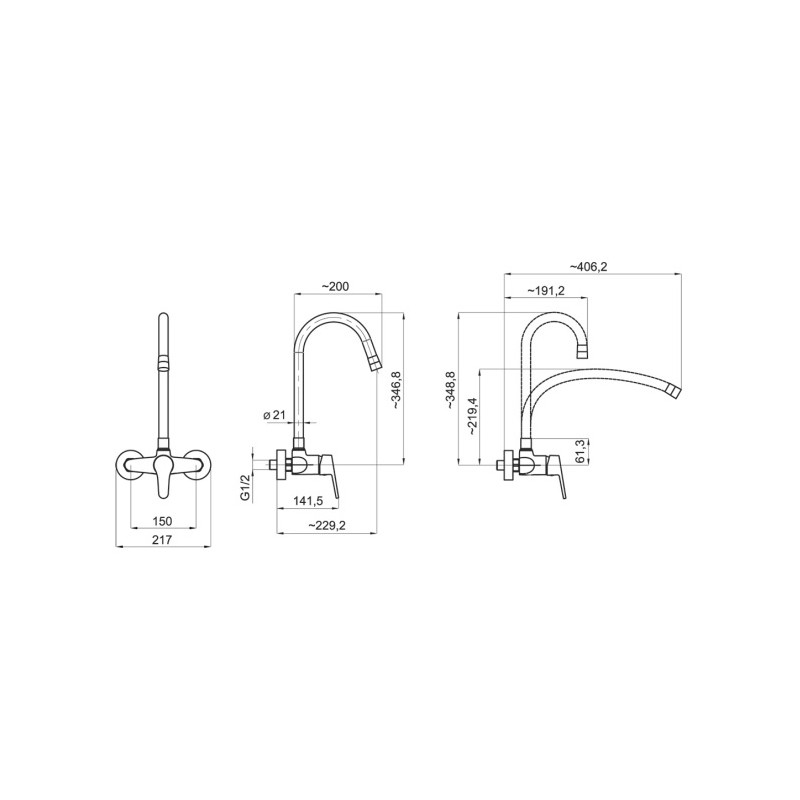 Kvalitná a odolná, keramická kartuš 35 mm so 5 ročnou zárukou. Prvotriedna povrchová úprava. Drezová nástenná batéria s rozostupom 150 mm s vrchným vývodom a FLEXI ramenom.