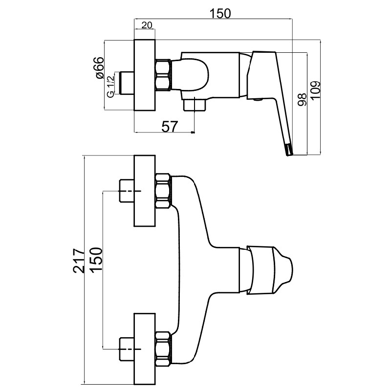 Kvalitná a odolná, keramická kartuš 35 mm s 5 ročnou zárukou. Prvotriedne chrómové prevedenie. Sprchová nástenná batéria so spodným vývodom s rozostupom 150 mm.