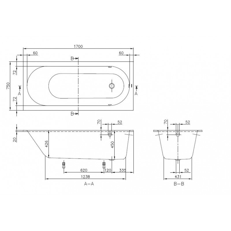 Umiestnenie odtoku | v strede pri kratšej strane |