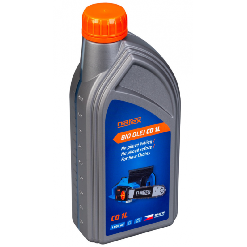 Biologicky odbúrateľný olej Narex BIOOMA CO 1L bude dokonale mazať reťaz a lištu vašej elektrickej alebo aj motorovej reťazovej píly a pritom nebude prinášať do životného prostredia žiadne škodlivé látky. Po 21 dňoch sa tento olej v pôde rozloží už z 80% na nezávadné zložky. Pritom má však BIOOMA CO 1L vynikajúce mazacie a antikorózne výsledky.Biologicky odbúrateľný olej na reťazS rastlinným olejom NAREX BIOOMA CO 1L sa nemusíte obávať polymerizácie-zrôsolovatenia, v prípade vyšších teplôt alebo intenzívnejšieho používania. Ani vo veľkom chlade nebudete mať s týmto olejom problém, jeho bod tuhnutia je totiž -25 °C.Bez polymerizácie (zrôsolovatenia) oleja pri vysokých teplotách Vhodný pre všetky varianty pílových reťazí a vodiacich líšt Rastlinný olej biologicky odbúrateľný za 21 dní Nízky sklon k tuhnutiu = bod tuhnutia -25°C Zvýšená priľnavosť oleja k reťazi Vysoký antikorozívny účinok Veľmi dobrý mazací výkon Zdravotne nezávadný Celoročné použitie