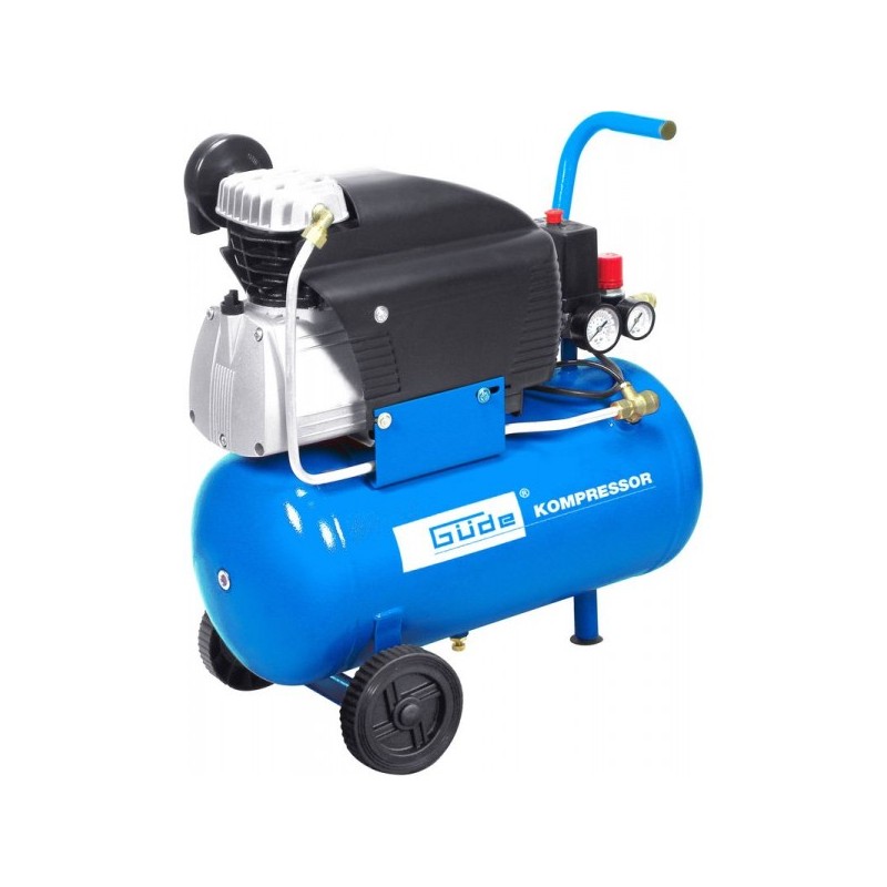 Jednovalcový kompresor s olejovým mazaním, s priamym pohonom. Tlakový spínač, manometer tlaku v nádobe a manometer pracovného tlaku, 2 spojky na stlačený vzduch, redukčný ventil pracovného tlaku, poistný ventil, spätný ventil, vypúšťací ventil na kondenzát, vzduchový filter. Kompresor 231/10/24 230V