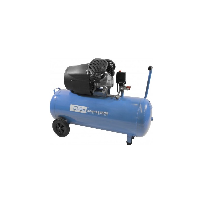 Güde Kompresor 412/8/100 Olejom mazaný dvojvalcový V agregát, remeňový prevod, rukoväť pre presun, tlakový spínač, 2 manometre, 2 pneumatické spojky, bezpečnostný ventil, zdvojená noha s gumenými tlmičmi, plastové kolesá.Technické údaje: Sieťové napätie: 230 V Frekvencia: 50 Hz Výkon motora (P1): 2200 W Otáčky motora: 2850 min-1 Sací výkon: 412 l/min Efektívne dodávané množstvo: 228 l/min Max.tlak: 8 bar Objem vzdušníka: 100 l Počet valcov: 2 Dĺžka prípojného kábla: 200 cm Hmotnosť: 52,5 kg