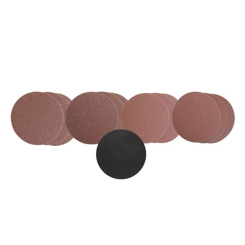 Sada obsahuje 3x brúsny papier K60, 3x brúsny papier K80, 3x brúsny papier K120, 3x brúsny papier K240, adaptér na brúsny papier. Uchytenie na suchý zips. Brúsny papier vhodný na Brúsku pásovú a kotúčovú BTS 4000 (kód tovaru: 55113), na Pásovú a tanierovú brúsku GBTS 400 (kód tovaru: 55135), na Pneumatickú excentrickú brúsku 150 (kód tovaru: 40026).